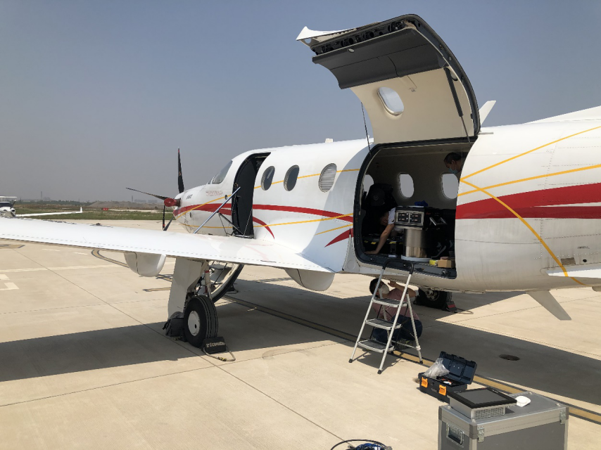 本次航摄选用了性能卓越的PC-12型飞机,该飞机产自瑞士皮拉图斯,具有400公里每小时以上的巡航速度,非常适合本次项目。但在调试中发现飞机的电源与航摄相机的适配存在问题,为了不影响五一的航摄飞行,分院领导带着配件设备从天津紧急赶往黄骅机场,5月1日凌晨6点就赶到了工作现场,及时调试设备保障了航摄飞行的顺利进行。