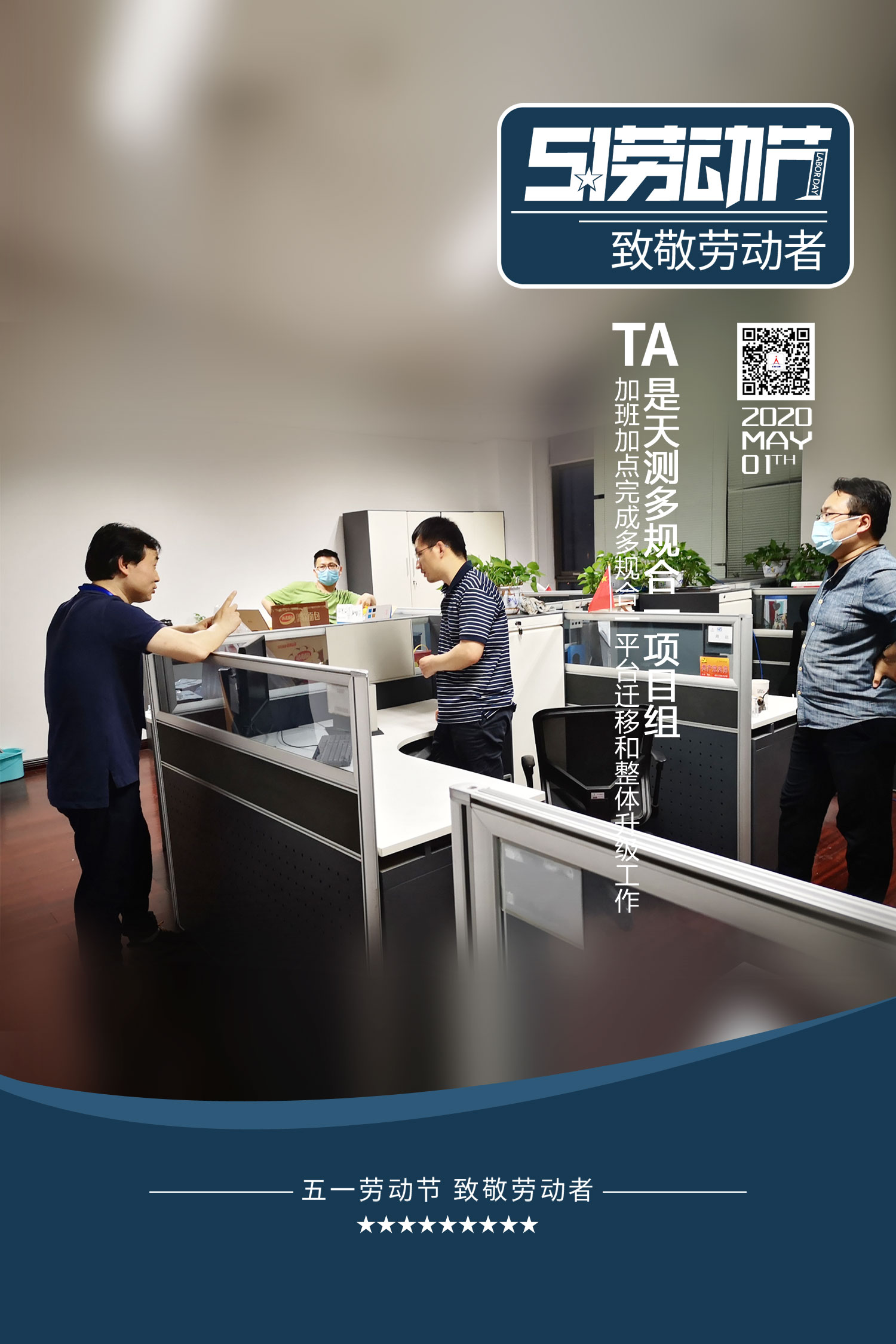 五一假期,劳动者自己的节日,在全面复工复产的关键时期,信息工程院多规合一项目组克服困难,坚守岗位,连日奋战到深夜。实现了平台的平稳过渡和顺利运行,圆满完成了市局的各项任务要求,服务全市的规划和审批改革大局。劳动创造幸福,实干创造价值,项目成员们用最朴素的方式诠释了普通劳动者的初心和使命,责任与担当。