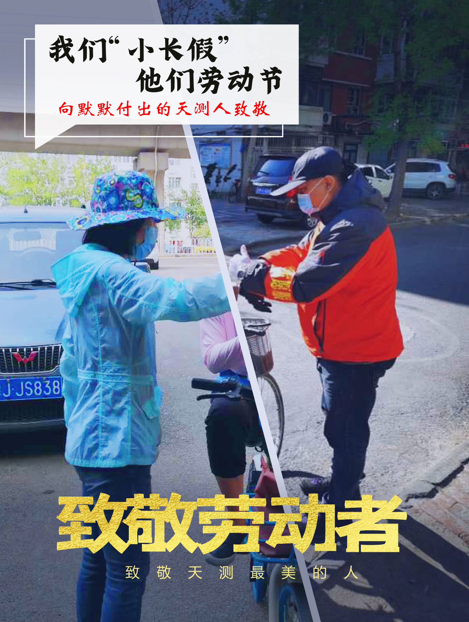 测绘七院党支部曹芳芳、崔鹏两人一同坚守在建新一社区,一个岗位两位同志,共同守护居民健康。(左:曹芳芳 右:崔鹏)