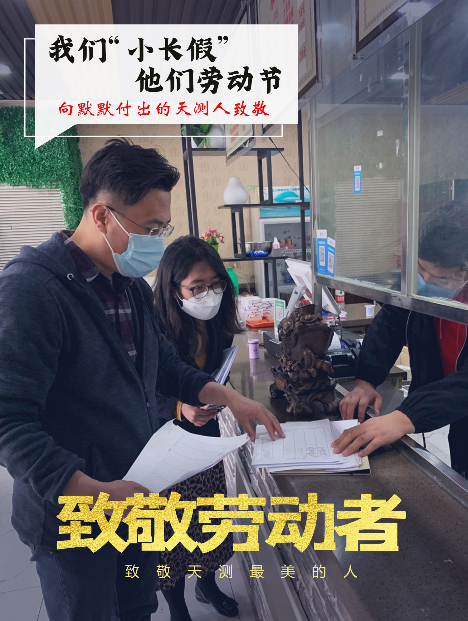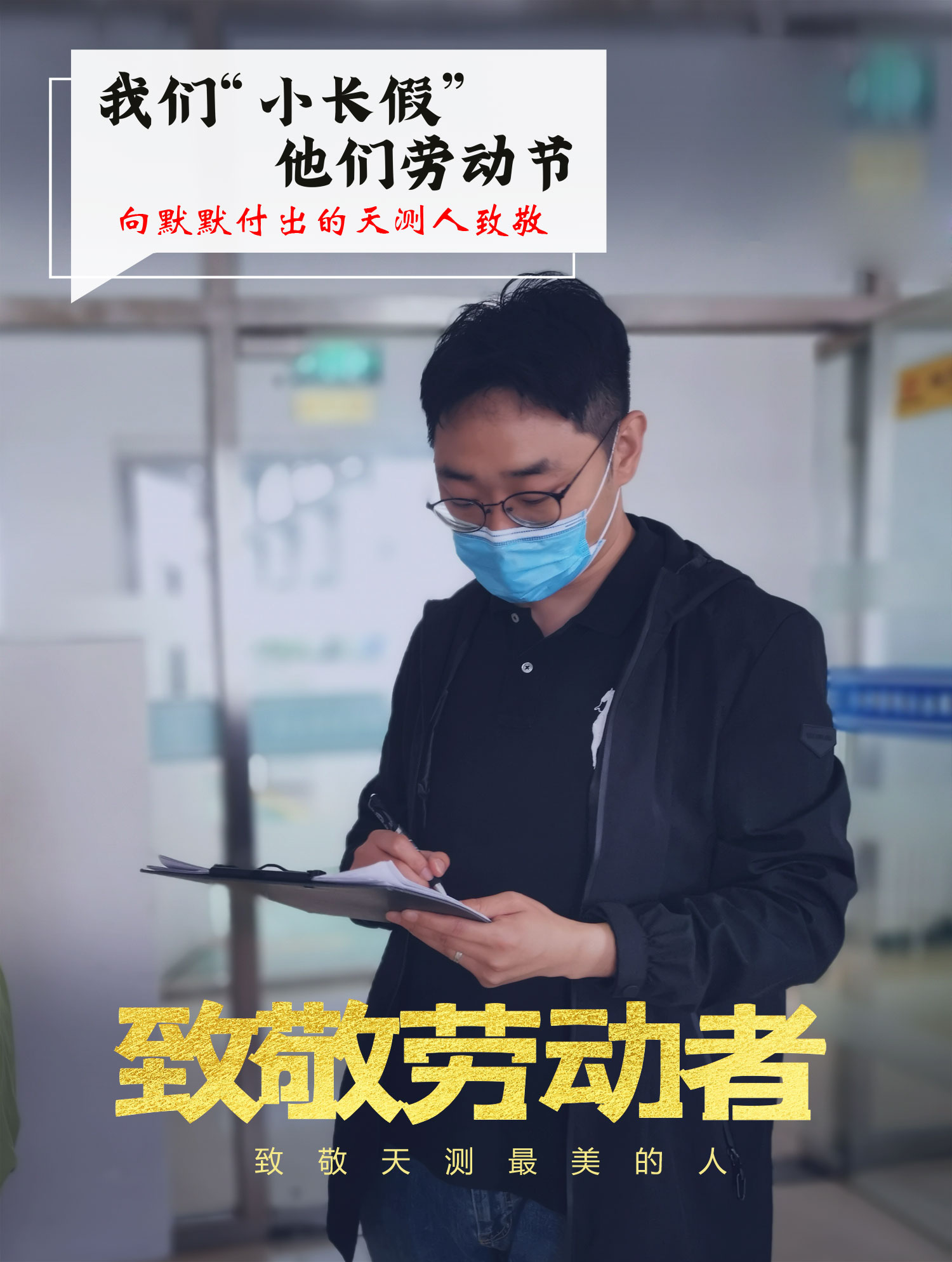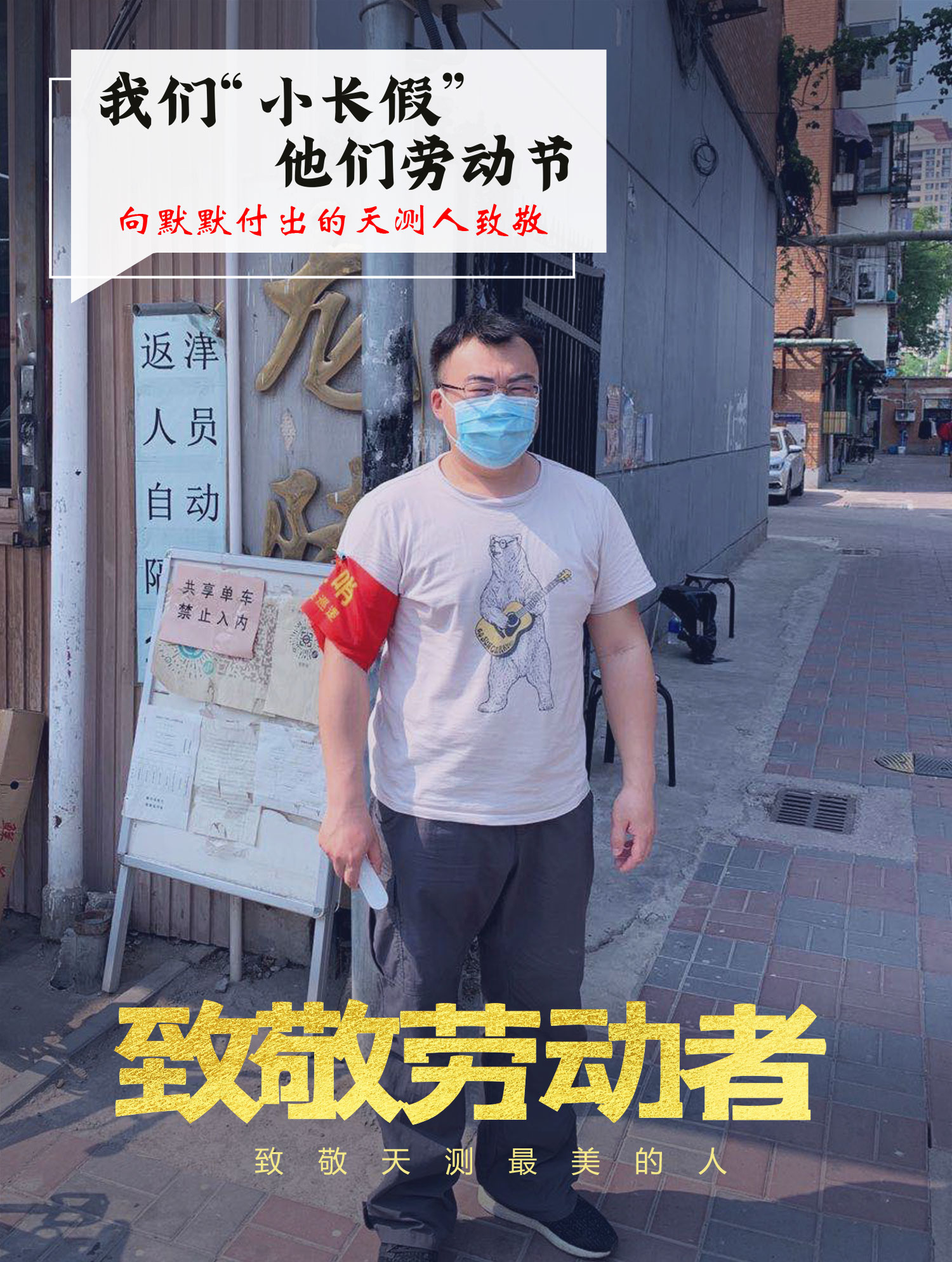 测绘七院党支部张博,派驻到泰达工业园推动企业复工复产工作,五一劳动节假期一直在一线工作。(图为张博正在进行检查登记)