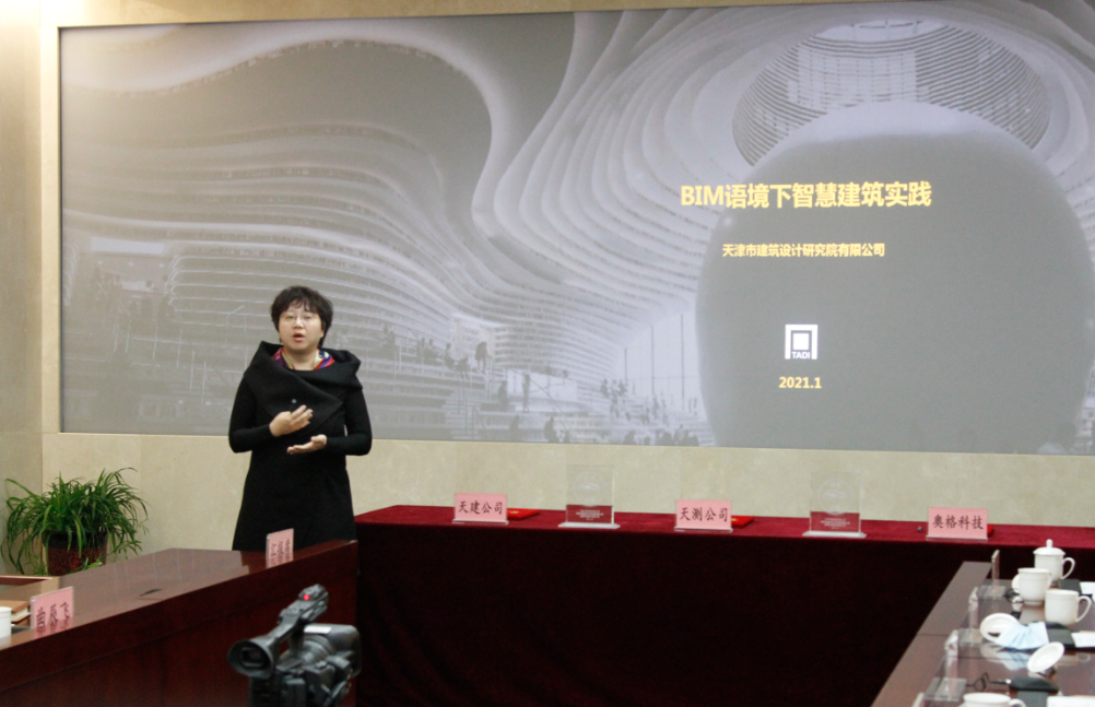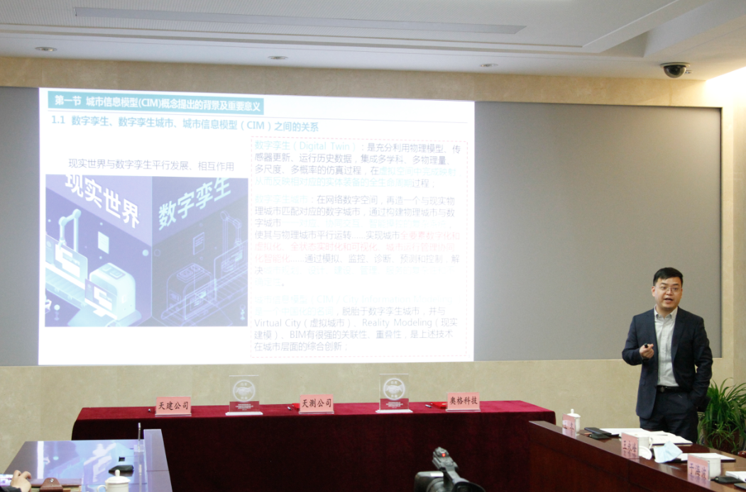 天建公司作为天津地区规模最大、资质最全、技术力量最强的民用建筑设计单位,马华山重点介绍了在设计一体化、工程总承包、全过程工程咨询的集成化服务业务,以及在绿色建筑、BIM技术、建筑智能化等技术领域形成的行业领先优势。奥格科技公司致力于智慧水务、智慧城建与智慧规划信息技术研究,在CIM平台三维模型表达和管理方面具有丰富经验。唐伟平重点介绍了在城市信息模型(CIM)、智慧城建与智慧规划等领域的信息化应用情况,及为智慧化城市运行管理服务案例。