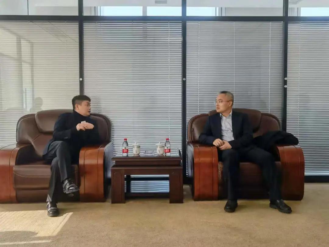 签约仪式启动前,国网普迅电力信息技术有限公司党总支书记、执行董事胡浩瀚与盛中杰进行了座谈。