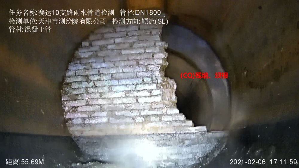城市管道保障着我们每一个人的生活,但随着管道逐年老化,管道拥堵、渗漏等问题也逐渐显露,会造成土体地下水污染、城市内涝、地表下沉等危害,对城市的运营发展、人们的生命财产安全存在潜在威胁。为全面了解西青开发区地下管道的运行状况,及时掌握管道结构和功能安全程度,发现管道问题,规避相关风险,天津市测绘院有限公司基础测绘院受天津市西青经济开发集团有限公司委托,成立项目攻关小组,制定检测方案,积极采用新技术,探索新方法,共排查出破裂、渗漏、腐蚀、异物穿入等多处问题,实现公司管道检测领域零的突破。