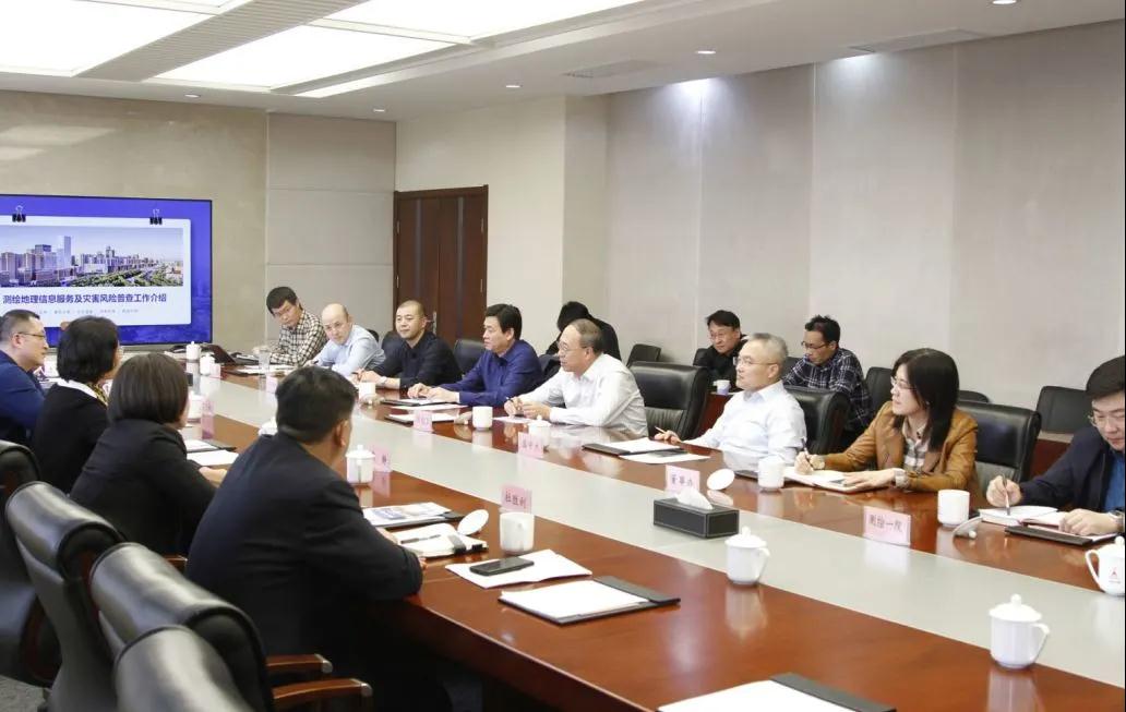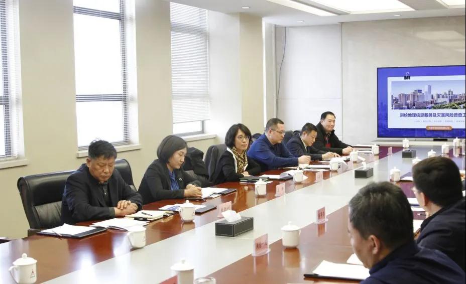 刘俊卫代表天测公司对王嘉惠一行表示欢迎,介绍了天测公司的基本情况、业务范围及近期为政府服务的重点项目。会上,天测公司信息工程院汇报了公司测绘地理信息新技术辅助政府决策支撑应用和在河西区提供的技术服务,详细汇报了目前开展的灾害风险普查工作情况。