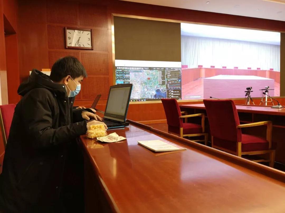 战“疫”背后,是一群为了抗击疫情不眠不休,边吃饭边敲击着键盘编写代码的天测工程师。他们说“总书记强调了,这场战役是全民战,医务工作者冲在了救治一线,人民警察冲在了管控一线,作为地理信息工程师,只想用自己的技能,做一些力所能及的事情为这场战役助力。”在接到研发指令后,他们秉承天测精神,召之即来,来则能战。他们不眠不休地整合着确诊、疑似病例等疫情分布情况及相关人员的活动轨迹,汇总着医学隔离点、定点医院、发热门诊等防疫防控部署信息,梳理着每天各时段疫情更新情况,累计汇总整合相关数据要素千余项,历经60个小时的艰苦奋战,终于在2月16日凌晨顺利完成初期平台搭建和数据融合分析。并按照16日上午李鸿忠书记的要求进行完善。2月17日下午,李鸿忠书记率市委市政府有关领导,运用指挥平台就天津市疫情分布和防控进行了深入研究和部署。