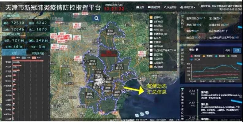 连日来,一场没有硝烟的战“疫”全面打响,市测绘院积极响应,迅速行动,利用地理信息大数据自主研发了《新冠肺炎疫情防控指挥平台》(以下简称“防控指挥平台”),通过提供权威、准确、可信赖的疫情动态信息,为政府部门做好疫情联防联控提供可靠的数据支撑和技术保障。2月16日上午,市委书记、市新冠肺炎疫情防控领导小组组长李鸿忠在市防控作战指挥室,依托市测绘院研发的防控指挥平台仔细察看了天津市确诊患者、发热门诊、医学隔离点、各区指挥部和重点医疗企业等区域空间分布位置,并利用指挥平台的综合统计分析图,实时联线询问有关防控工作部署的落实情况。