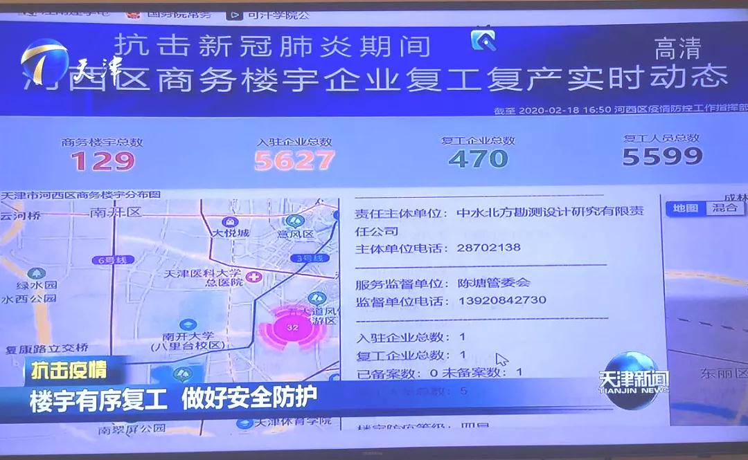 一边投身于疫情防控阻击战,一边服务于经济发展保卫战,有序推动企业复工复产也是当下的重要任务。2月15日,数字防疫小组接到系统开发任务,助力河西区商务楼宇企业复工复产及疫情防控。